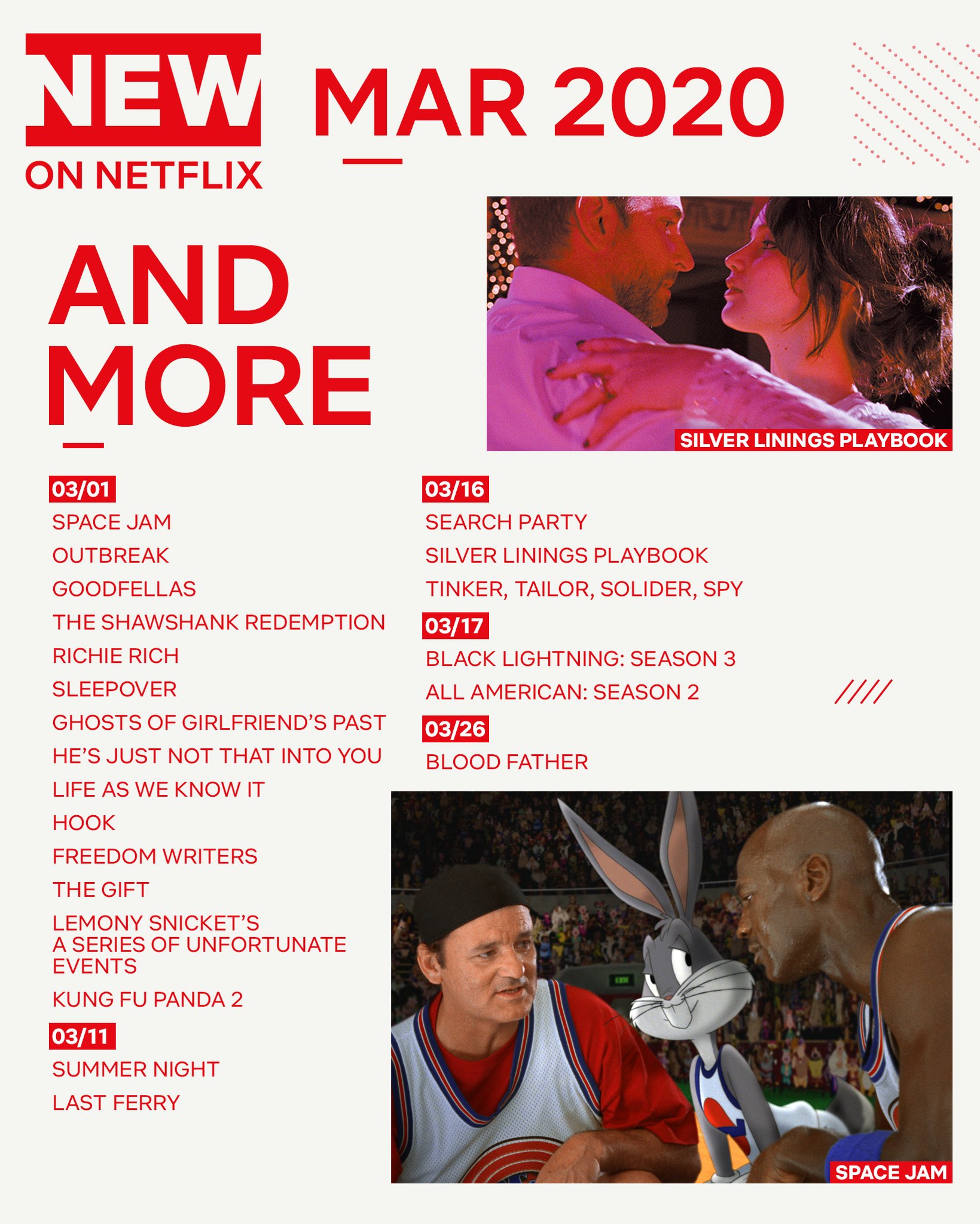 Every movie and tv show being added in march.